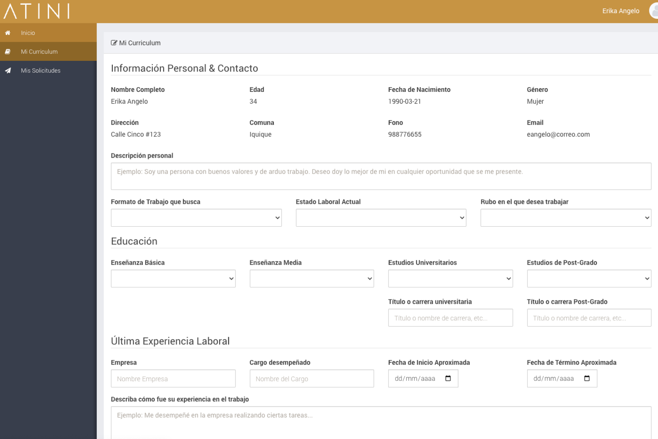 En ATINI puedes crear tu propio curriculum rellenando nuestro formulario simplista.